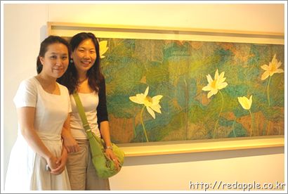 이번 전시는 나현이 연꽃 그림이 더 화려해 졌다 했더니 그이유가 금분을 써서 였나부다.