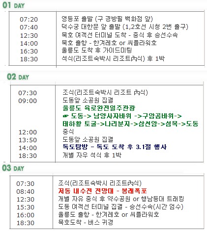 개별적으로 가려고 숙소, 배편, 묵호 또는 포항으로 가는 교통편과 울릉도에서의 이동을 체크한 결과