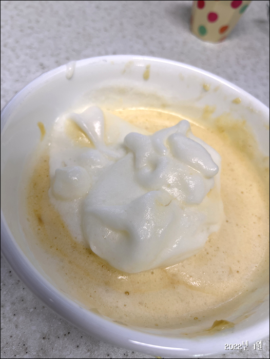 달걀로 머랭을 만들어서 바로 구워먹는 요리인데 (이름이 생각안나네)
