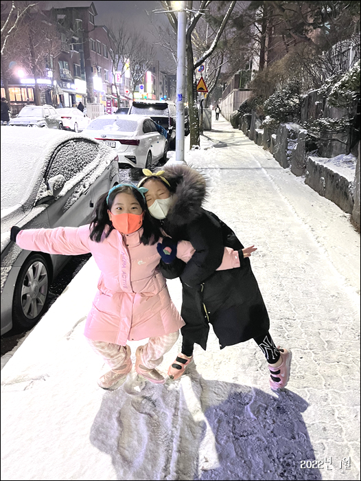 눈이오면 밖에나가 잠시 놀다 오고 주말이 되면 아빠랑 맛있는거 먹으며