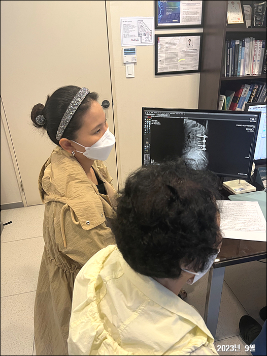 엄마시술 - 잘 못걸어서... 고관절 중간에 염증이 생겼다구 시술