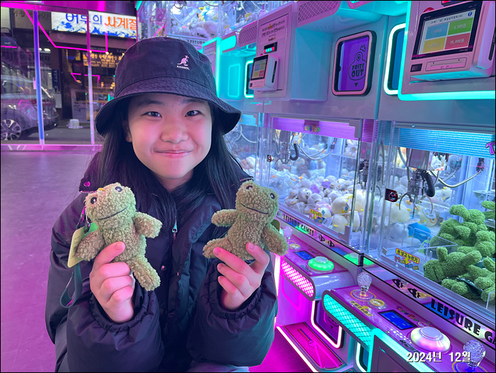 치과 갔다가 인형뽑기 가게가 새로 생겨서 뽑았는데 제미니가 처음했는데 아주 잘했다!
