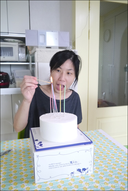 정화생일 2014. 8. 31. 일 --- 미리하는 생일파티 내생일은 이틀뒤지만 (음력 8월 9일) 신랑이 바쁜 관계로 일요일 오늘 미리 축하 받았다 제민양과 함께하는 두번째 생일이다. 아직 호~~ 하고 촛불을 같이 끄지 못했지만~~ 많이 웃어주는 제민양~~ 내년에는 더 많이 축하해 주겠지~~? 벌써 나도 마흔 둘이나 됐네~~ 근데 생일날. 더 열심히 살아야 겠다는 생각이 드는건 뭔지 ㅋㅋ~ **신랑은 이른아침이라.... 몰골이 말이 아니라서... 사진에 없음~ ㅋㅋ